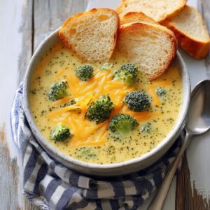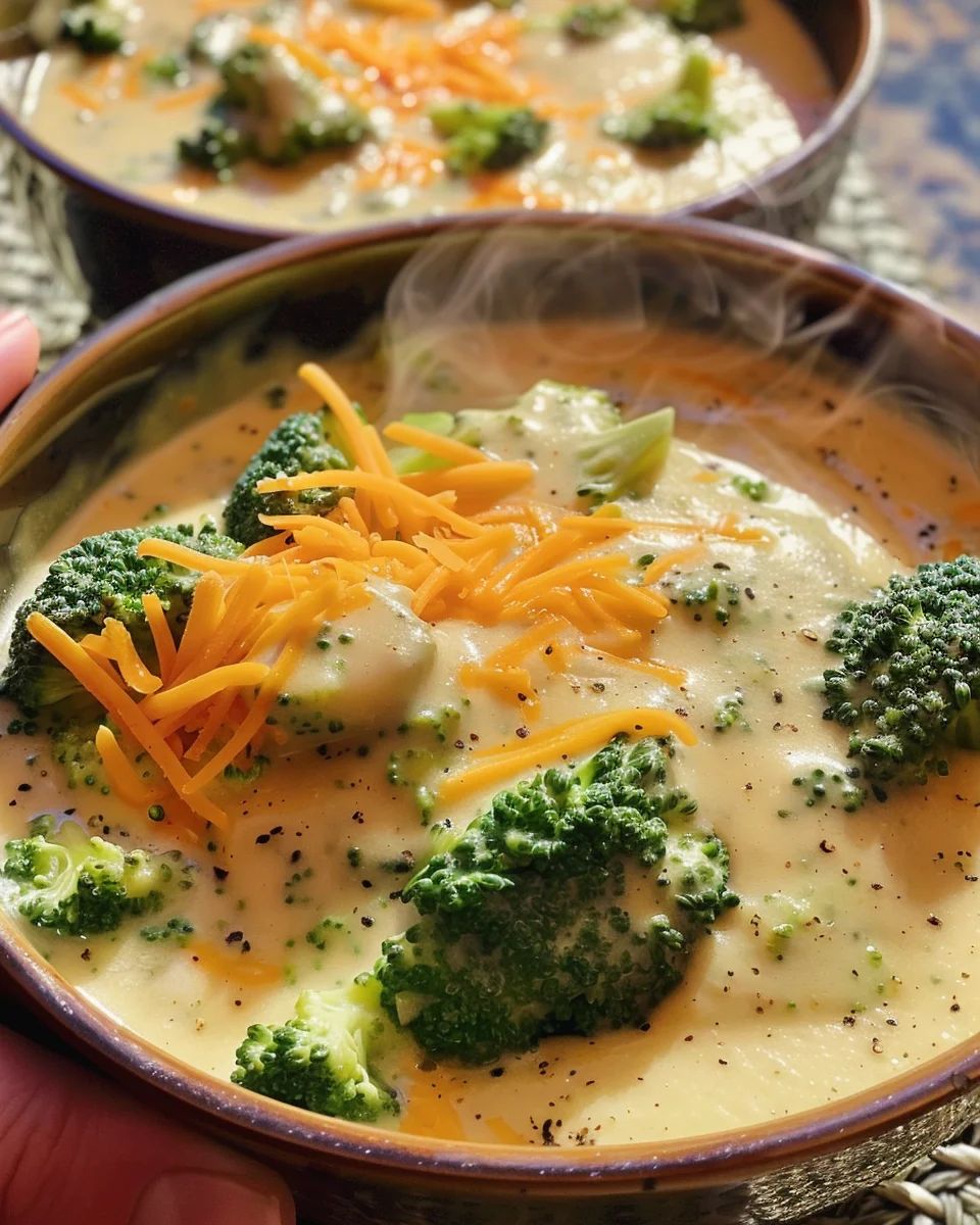 - Once the cheese has melted and everything is combined, your Copycat Broccoli Cheddar Soup is ready! Serve it hot with crusty bread for dipping.