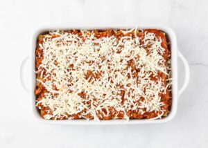 Meatball Casserole is a simple, comforting oven-baked dish made with frozen meatballs. Finished with melted mozzarella and Parmesan cheese, this easy recipe is perfect for busy